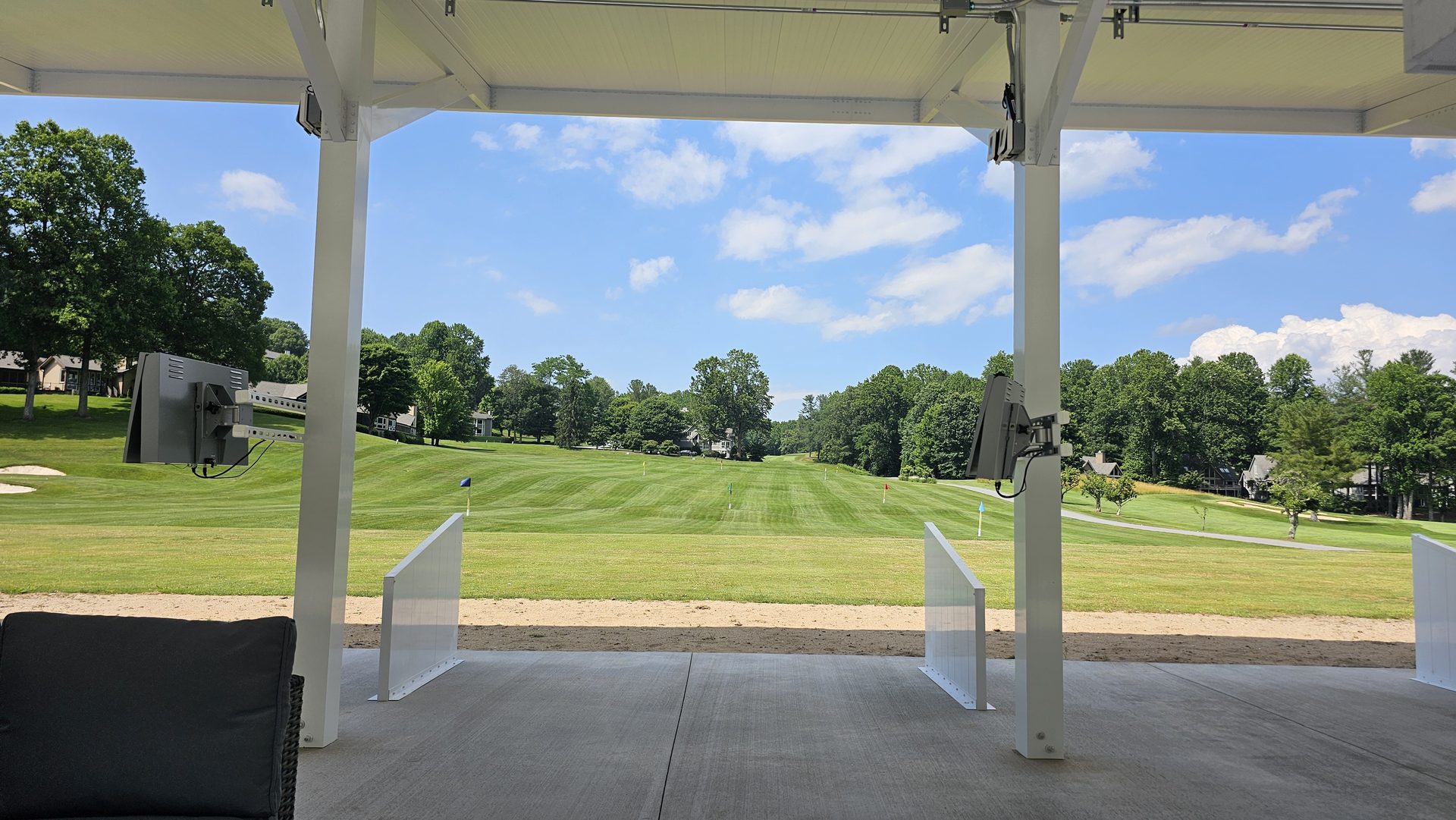 Each bay received weatherproof camera units mounted along the canopy, precision-positioned to track every ball in flight. Flat-screen displays, lighting, and furniture followed - creating a clean, modern atmosphere.