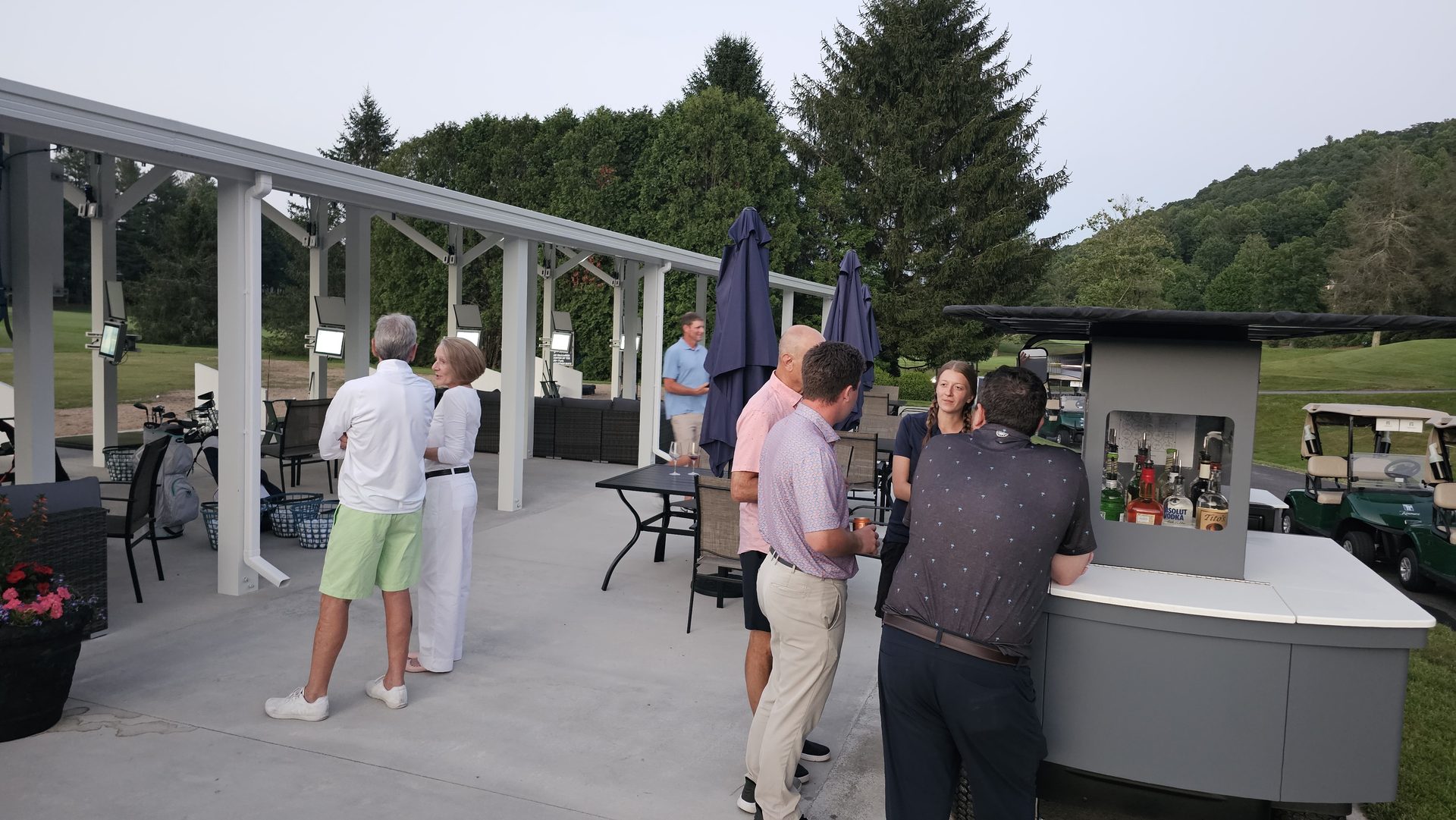 Evening sessions brought a new dimension to the experience. Photos from twilight show members gathered beneath soft canopy lighting, enjoying drinks and conversation around lounge seating and patio tables. The once-simple range had evolved into both a training ground and a community gathering space - golf performance paired with clubhouse atmosphere.